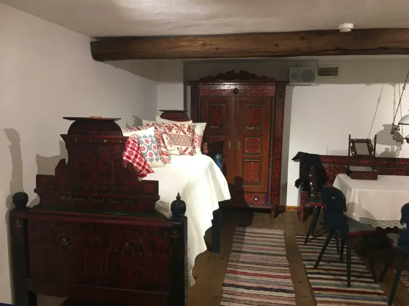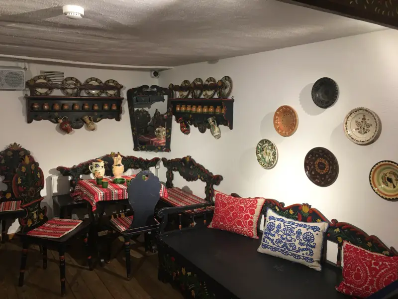 We set out to Urban Betyár (“Urban Outlaw” in English) for lunch, located just next to St. Stephen’s Basilica. We walked in and were instantly taken aback by the modern design – big wooden railroad tracks lined along the bar, dining rooms with vintage suitcases along the ceiling, and bookshelves filled with books, glass, and Hungarian trinkets. We received a tour before our lunch and discovered that the restaurant includes a museum downstairs! The museum houses traditional Hungarian furniture and paintings dating back the last couple centuries.
