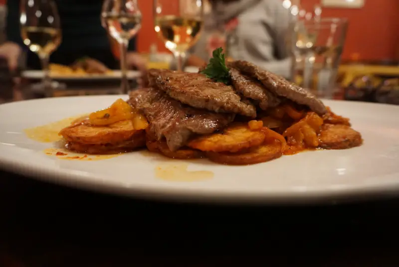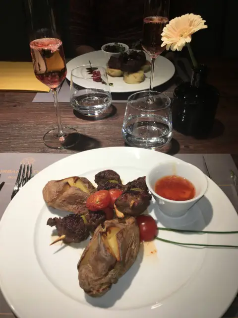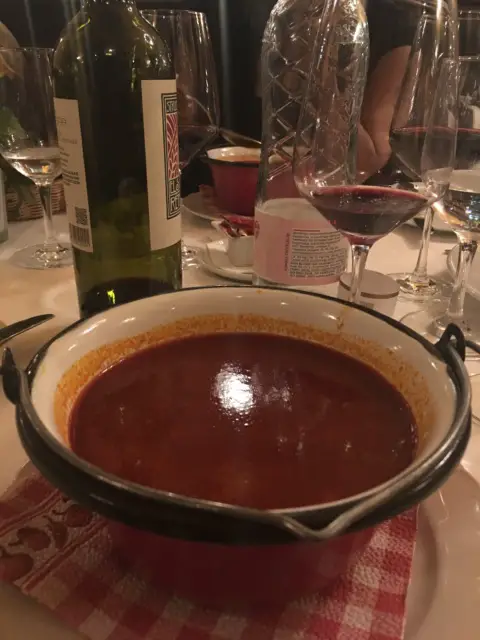 If you ever have the opportunity to visit Budapest, definitely check this place out. We went on a Saturday night, and it was busy so reserve in advance! The staff was very welcoming and attentive. The house wine (bottle was only 10€) and food were delicious, inexpensive, and despite eating a 3-course meal, the food was light and we were able to enjoy our Saturday night partying without feeling weighed down.