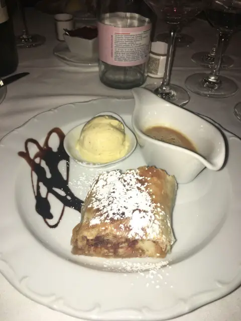 I don’t normally order a 3-course meal, but I heard so many great things about this restaurant and the menu options just looked too good not to! Rétesház, also known as the First Strudel House of Pest introduces you to a world of strudels you may not have known existed – from savory (salmon, meat, vegetables) to sweet (apple, raspberry, apricot). In fair form, my 3-course meal included a savory [poultry] strudel for the entrée/appetizer, traditional Hungarian goulash for the main dish, and apple strudel for dessert. Absolutely delicious!